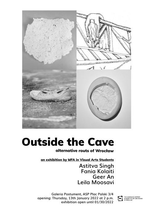 Students of the MFA in Visual Arts studies invite you to the opening of their exhibition 'Outside the Cave. Alternative routs of Wrocław', which will be held at Galeria Postument on Thursday, January 13, 2022 at 2:00 p.m. The exhibition will be open for public until January 30, 2022.