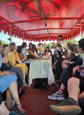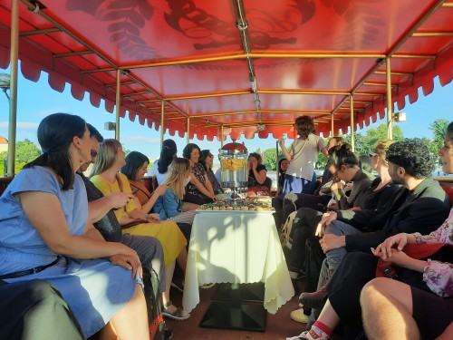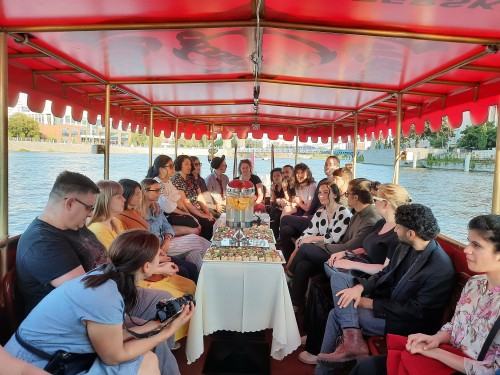 I-year students of MFA programme as well as recent graduates were able to share good practices, knowledge and advices. During the cruise on Odra River, the graduates shared their answers to the topics related to to their masters's thesis, sources of inspiration as well as experiences related to studying in Poland and their future plans.