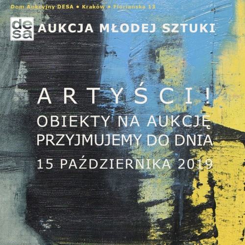 Dom Aukcyjny DESA Dzieła Sztuki i Antyki z siedzibą w Krakowie przy ul. Floriańskiej 13 zaprasza do współpracy przy 18 Aukcji Młodej Sztuki, która odbędzie się 30 listopada 2019 roku. Podczas aukcji wystawionych zostanie około 80 prac artystów z całej Polski, studentów.