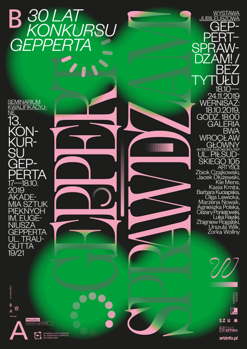Na 30-lecie Konkursu Gepperta przygotowana została wystawa jubileuszowa Geppert – Sprawdzam / Bez tytułu (2019), która jest prezentacją najnowszych realizacji laureatów wszystkich poprzednich dwunastu edycji Konkursu. Tytuł, a w zasadzie jego brak, odnosi się do niejednoznacznego statusu konkursów artystycznych. Czy są to przeglądy najlepszej sztuki? Czy faktycznie są trampoliną dla młodych twórców? Co oznacza udział w konkursie zdefiniowanym jako malarski? Czy można jednoznacznie uznać, że jego uczestnicy po latach faktycznie odnieśli sukces? Jaki jest sens formowania ich w grupę?