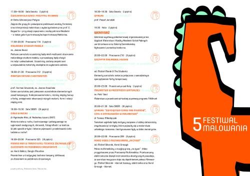 Podczas 5.FM otwarte zostaną malarskie pracownie, odbędą się pokazy, wykłady i warsztaty, prezentujące techniki i metody malarskiej ekspresji.