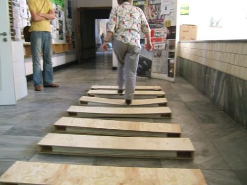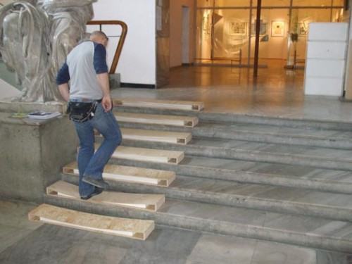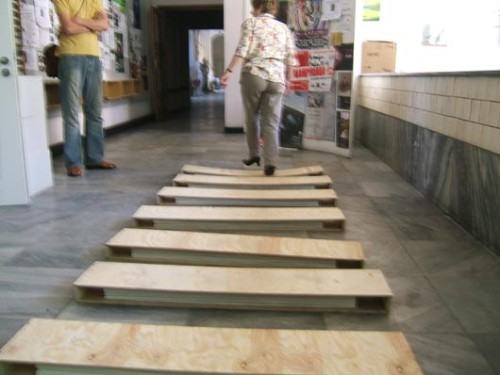 W ostatnim czasie na terenie ASP odbyły się dwie akcje studentów rzeźby zrealizowane w ramach zadań w pracowni nr 1 pod kierunkiem prof. Christosa Mandziosa.Grające stopnie – jako część przyszłego dyplomu – pokazał Leszek Babiec.