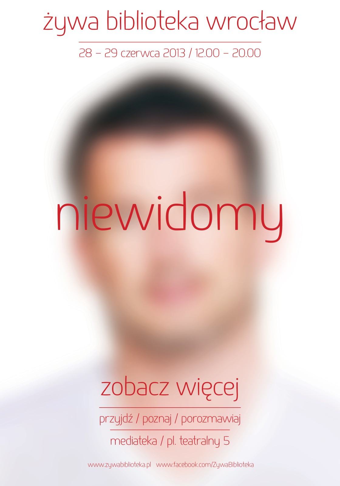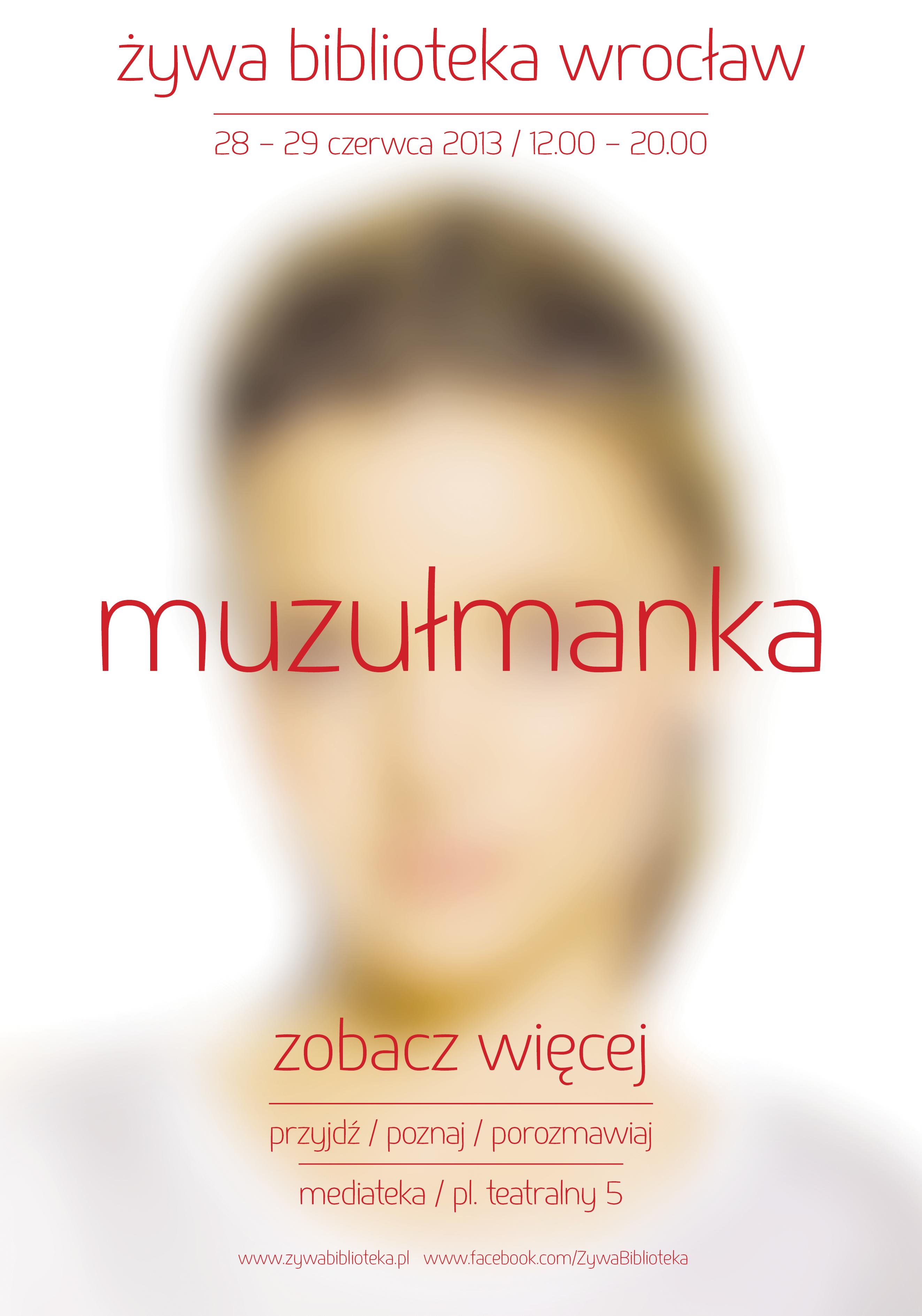 Po zrealizowanej we wrocławskiej Mediatece wystawie w październiku 2012 r., studentka Grafiki Aleksandra Szalbot kontynuuje współpracę z tą instytucją, tworząc elementy promocji dla wrocławskiej Żywej Biblioteki Wrocław 2013. Projekt obejmuje serię plakatów, baner na budynek i promocję w Internecie. Żywa Biblioteka odbędzie się w Mediatece na placu Teatralnym 5 w dniach 28 – 29 czerwca 2013, w godz. 12.00-20.00. Żywa Biblioteka działa dokładnie tak, jak zwykła biblioteka – czytelnicy mogą przyjść i wypożyczyć Książkę na określony czas. Jest tylko jedna różnica: Książkami w Żywej Bibliotece są ludzie, a czytelnicy wchodzą z nimi w dialog. Książki w Żywej Bibliotece to reprezentanci grup, które często spotykają się z uprzedzeniami na ich temat. To osoby, które często są ofiarami dyskryminacji lub wykluczenia społecznego. W tej bibliotece Książki nie tylko mówią, ale mogą także odpowiadać czytelnikom na pytania. Więcej informacji o wydarzeniu: http://www.mediateka.biblioteka.wroc.pl/ http://www.zywabiblioteka.pl/ https://www.facebook.com/ZywaBiblioteka