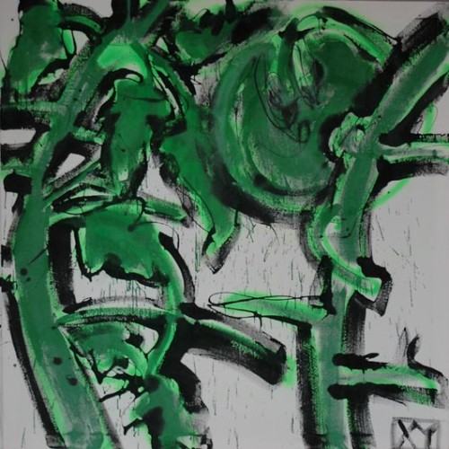 Malarstwo jest taką właśnie próbą komunikacji. Ten kto się roześmieje wypada z art worldu i nie bierze udziału w grze. Grze pozorów, tajemniczych hierarchii, grze w której, z zupełnie niejasnych powodów, często podpis jest cenniejszy od dzieła. A przecież, dla postronnego obserwatora nie jest jasne dlaczego dwa obiekty praktycznie wyglądające tak samo, drastycznie różnią się ceną i znaczeniem. Anna Mierzejewska pokazuje na wystawie dwa cykle obrazów. Pierwsze przedstawiają namalowane zamaszyście i bardzo ekspresyjnie krzaki pomidorów, które tworzą finezyjne ornamenty. Finezji dodaje również fakt, że te zamaszyście rzucone linie i plamy, spoczywają nie na tradycyjnym płótnie ale na różnokolorowych, delikatnych aksamitach, stylonach i innych tego typu tkaninach. Jest to jednak nie tylko ozdobny ornament ale też próba odpowiedzi na dość częste ale irytujące pytanie – Co obraz przedstawia ? i co artysta chciał przez to powiedzieć? Dla osób, którym odpowiedź „pomidor” jednak nie wystarcza, mam wyjaśnienie, że malarstwo jest wartością samą w sobie i nie tylko nie ma znaczenia co obraz przedstawia ale, że od początku dziejów, artyści malując obrazy mówią przez nie na ten sam odwieczny temat. Inne obrazy, malowane na równie niekonwencjonalnych ale eleganckich podłożach, to po prostu litery układające się w nazwisko artystki. Ta naiwna pozornie ale jednak bardzo ironiczna próba wylansowania własnego nazwiska jest jednocześnie bardzo śmiała kolorystycznie. Tła i litery układają się w bardzo efektowne zestawienia i mogłyby wspaniale rozświetlić niejedno wnętrze. Zachodzi jednak pytanie: czy ktoś chciałby ozdabiać przestrzeń doń należącą cudzym nazwiskiem? No chyba, że jest to nazwisko bardzo znane albo tak dobrze rokujące jak Mierzejewskiej. tekst: Paweł Jarodzki
