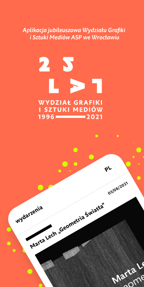 Zapraszamy do pobrania aplikacji Grafika i Sztuka Mediów przygotowanej z okazji 25-lecia Wydziału Grafiki i Sztuki Mediów Akademii Sztuk Pięknych im. Eugeniusza Gepperta we Wrocławiu.