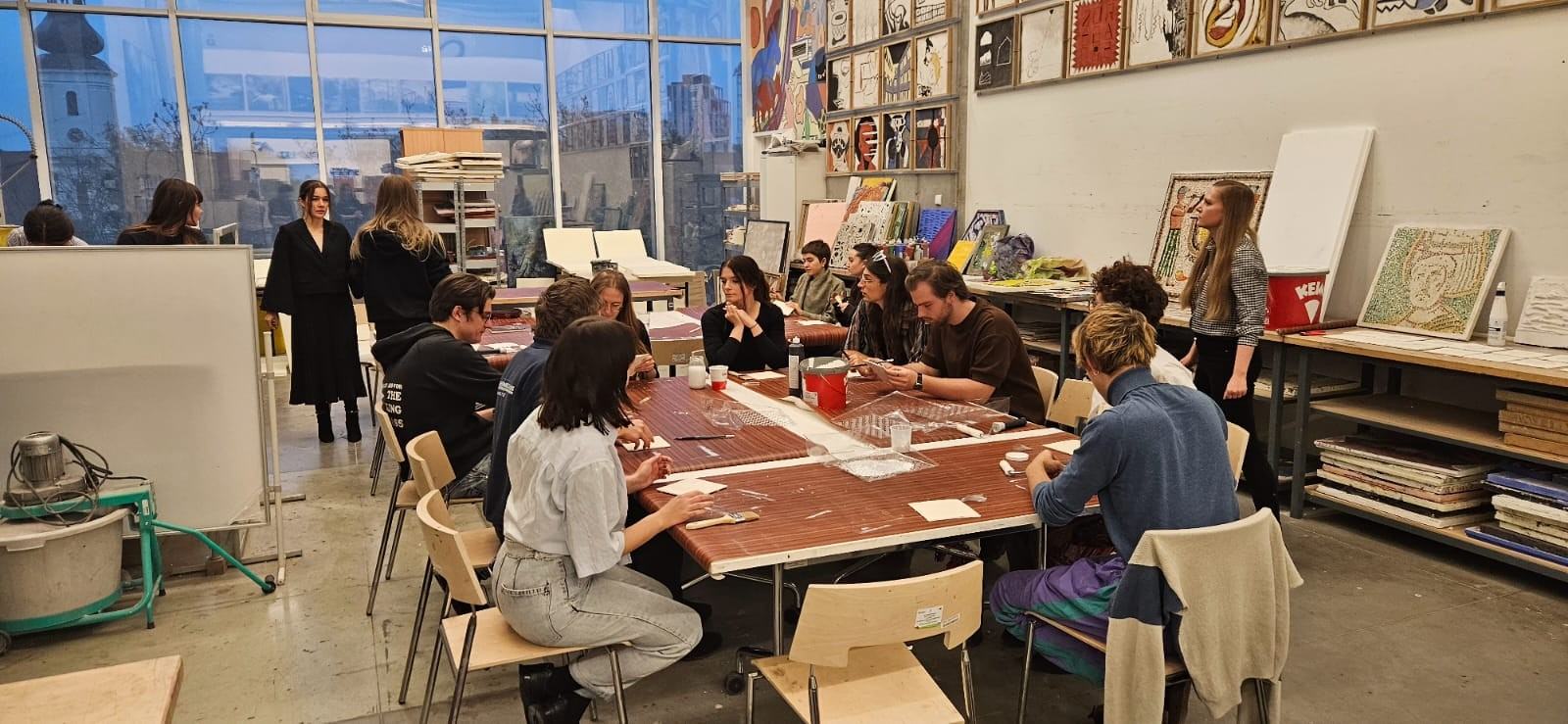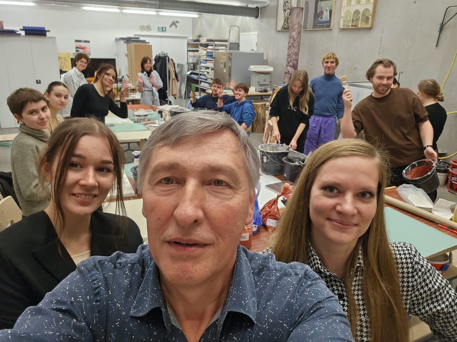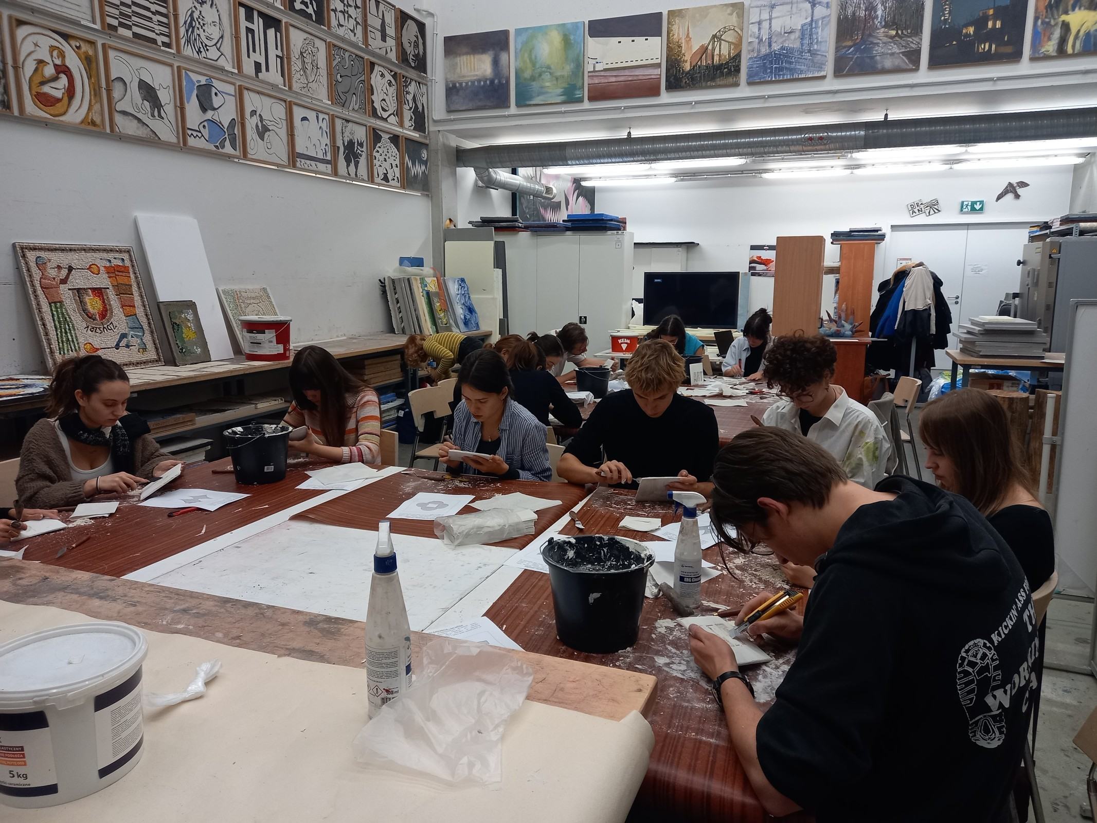 Ostatnim etapem warsztatów było zrealizowanie przez każdego z uczestników pracy własnej na podłożu specjalnie przygotowanym przez prowadzących. Studenci mieli okazję wykazać się pozyskaną wiedzą i umiejętnościami, zdobytymi podczas wykładów oraz ćwiczeń. Zadaniem było wykonanie swobodnej pracy artystycznej o charakterze haptycznym w technice mieszanej i z wykorzystaniem materiałów mineralnych. Efekty tego zadania już wkrótce zostaną zaprezentowane podczas wystawy zbiorowej.