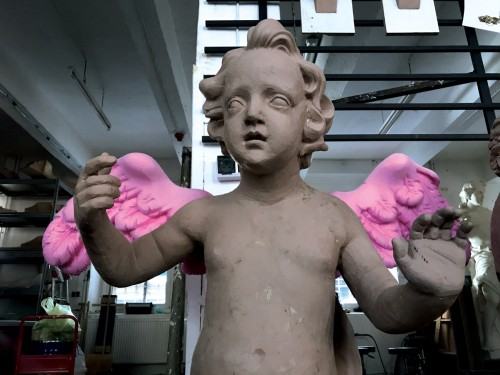 Na wystawie pokażemy zwęglone w pożarze trzy figury aniołów, spalony kartusz, miniaturowe figury makiety prospektu organowego, rysunki i projekty, gotowe drewniane i pozłocone fragmenty przyszłego prospektu organowego, stół stolarski i odrobinę narzędzi z ulicy Sokolniczej.