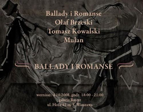 Wystawa "Ballady i Romanse" zabiera nas w podróż w świat smutnych historii i groteski. Jej autorami są artyści wkraczający dopiero na scenę artystyczną, ale posługujący się wyrobioną wyobraźnią i charakterystycznym językiem. Wszyscy dzielą się z nami przyjemnościami i nieprzyjemnościami naracji