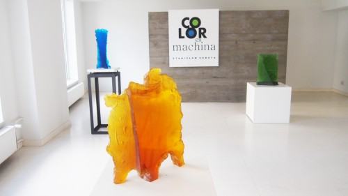 Kolor to wrażenie światła, źródło pasywnej energii słonecznej. Ta cecha materii, bryła i jej cechy, rzeźbiarskość obiektu oraz walor szklanego tworzywa są polem eksperymentu Stanisława Soboty. Rzeźba w jego wykonaniu, poprzez zastosowanie szkła i jego interakcje ze światłem, dąży w sposób szczególny do odsłonięcia wnętrza formy, która ukryta jest pod wizualnie dostępną powierzchnią rzeczy. Proces badania współdziałania transparentnej materii i światła, który prowadzi realizując kolejne cykle prac, odkrywa nowe obszary trójwymiarowości. Autor w swych obiektach analizuje też na nowo znaczenie siły gestu, kierunków, kątów, rytmów i napięć podstawowych. Syntetyzując wybrane motywy opracowuje formę tak, by jej siłą był kierunek od zewnątrz w głąb. Tytułowy color ex machina powołuje do istnienia przez refleksy światła na szkle dynamizm, energię i gradient, który "zainspirowany" naturą światła przydaje obiektom wyjątkowej tonacji barwnej. Ekspresja kształtu i faktury, wzmocniona oddziaływaniem prześwietlonego koloru sprawia, że rzeźby ze szkła Stanisława Soboty, posiadając walor autentyzmu, emanują wyrazistością kształtu i energią barwy.