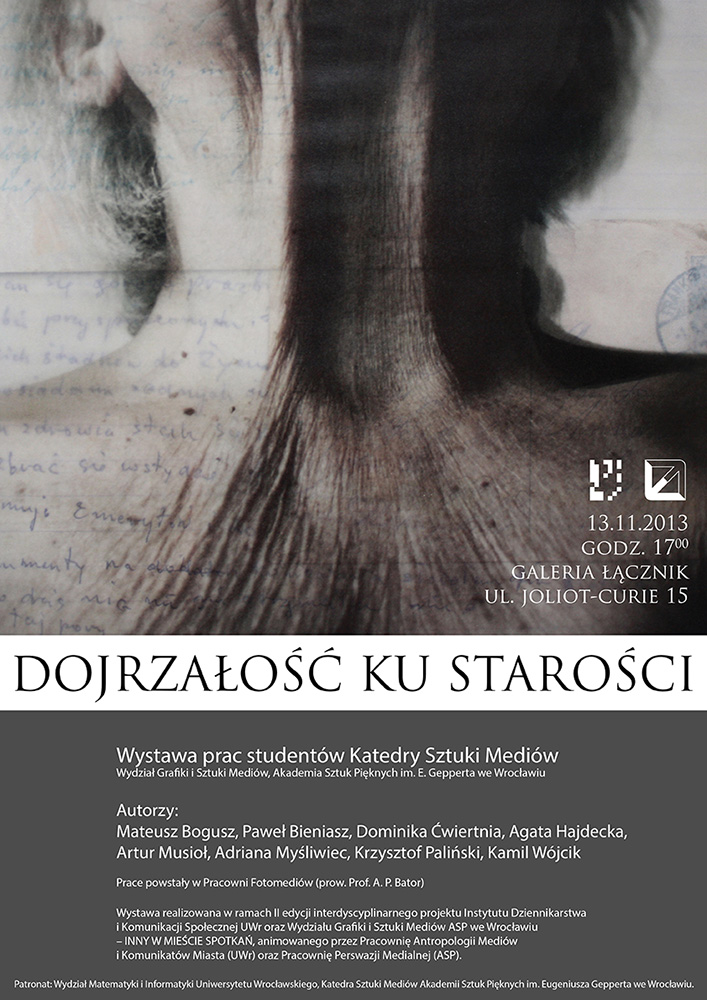 Wystawa jest realizowana w ramach II edycji interdyscyplinarnego projektu Instytutu Dziennikarstwa i Komunikacji Społecznej UWr oraz Wydziału Grafiki i Sztuki Mediów ASP we Wrocławiu – INNY W MIEŚCIE SPOTKAŃ, animowanego przez Pracownię Antropologii Mediów i Komunikatów Miasta (UWr) oraz Pracownię Perswazji Medialnej (ASP).