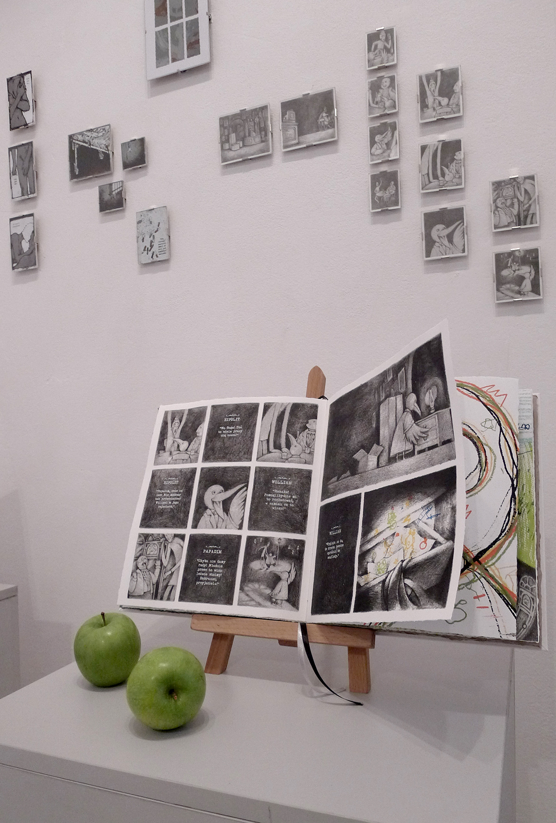 Autorka pokazała ilustracje oraz własnoręcznie wykonaną w technice sitodruku książkę pod tym samym tytułem.