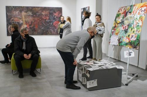 Dominik Jan Gralak tworzy ekspresyjne obrazy abstrakcyjne, w których można się doszukać motywów figuratywnych nawiązujących do tradycji sztuk pierwotnych, jaskiniowych. Jego prace mają charakter spontaniczny i intuicyjny, istotne jest eksperymentowanie z powierzchnią płótna poprzez zwielokrotnianie warstw nakładanej farby oraz skalowanie małoformatowych szkiców. W uproszczonych formach widać również próbę asymilacji dzieł Jean-Michel Basquiata czy Andre Butzera. Artysta inspiruje się własnym doświadczeniem surfera i kontaktu z żywiołami natury. Świat przedstawiony na obrazach wystawy „ZNAKi" może jawić się widzowi, jako pełen sprzeczności: radosny jak idealna fala i zatrważający jak tajemnicza otchłań. Symbolika znaków tylko z pozoru upraszcza przekaz. Dominik Gralak prowadzi grę między obrazem a słowem. Sposób w jaki emocje przełożone zostały na język wizualny ukazuje mocno zróżnicowane spektrum formalne, od form portretowych pełnych żywej ferii barw, po po bardziej stonowane, wielkoformatowe obrazy bezgraniczne.