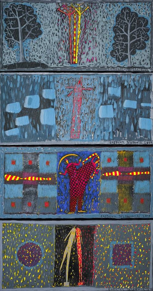 Rok 1982 był pełen przewartościowań. Trauma tego okresu ujawniła mi potrzebę poszukiwania innego sposobu obrazowania. Pewnego dnia, idąc pieszo do pracy, stanąłem pod drzewem rosnącym na wale przy moście Trzebnickim (będącym motywem w późniejszych grafikach i rysunkach) i powziąłem postanowienie dotyczące dalszych poszukiwań artystycznych. Potrzebowałem formy, która wyraziłaby charakterystyczny dla mnie sposób przeżywania rzeczywistości, ukrywając jednocześnie moje doświadczenia – odmiany kodu, którego konotacje byłyby bliższe moim odczuciom, temu, co mnie spotyka. Dotychczasowy sposób wizualnego przekazu wydał mi się nieodpowiedni, nieadekwatny do wizualizowania wówczas doświadczanych stanów. W tym czasie powołałem postać klauna i motyw kratki jako najbardziej rozpoznawalne dla mojego obrazowania wizualnego.