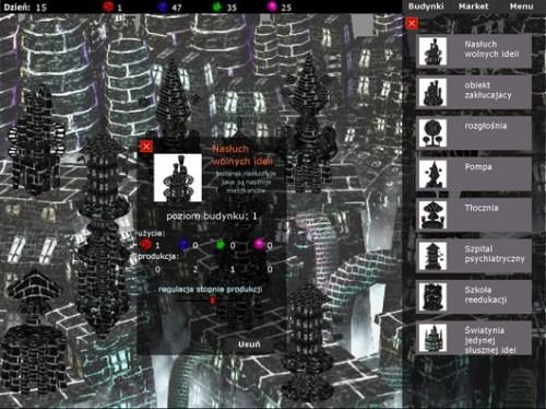 Zajęcia odbywały się w Katedrze Sztuki Mediów ASP Wrocław i na Wydziale Matematyki i Informatyki Uniwersytetu Wrocławskiego. Celem wspólnego projektu było stworzenie ekonomicznej gry sieciowej w technologii flash. W projekcie brali udział Maja Wolińska - pomysł projektu, Jakub Jernajczyk - koordynacja i propozycja algorytmu gry, Marek Grzyb - prowadzący grupę studentów ASP, Krzysztof Tabisz - prowadzący grupę studentów UWr, studenci ASP: Maria Majnusz, Agata Wawryniuk, Jeremi Jędroś, Barnaba Mikułowski, Michał Niewiara, Konrad Okoński, oraz grupa studentów UWr: Paweł Adamski, Wojciech Babicz, Marcin Chomont, Jakub Derdziak, Bartosz Płaza i Karol Sotomski. Zadaniem naszych studentów była oprawa plastyczna gry, studenci Uniwersytetu zajęli się jej oprogramowaniem. Poniżej fotorelacja z finałowego pokazu oraz screeny z gry. zdjęcia: Marek Grzyb, Jakub Jernajczyk, Konrad Okoński