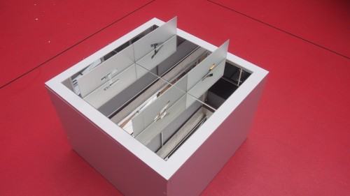Szklane obiekty, których forma wynika z układu i przekształceń elementów geometrii, od najprostszych, takich jak figura, pole powierzchni, odległość, miara kąta, przez bardziej zaawansowane, jak krzywizna, linia, punkt, wymiar. Symetryczne, regularne, ascetyczne tworzone ze szkła płaskiego, wykreślone światłem w przestrzeni, skłaniać mają do refleksji nad minimalizmem formy i sposobem oddziaływania tworzywa.