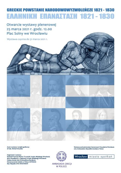 Zapraszamy serdecznie na uroczyste otwarcie plenerowej wystawy z okazji przypadającej w tym roku Dwusetnej Rocznicy Odzyskania Niepodległości Grecji. Autorem wystawy jest dr hab. Michał Hrisulidis z Katedry Scenografii, otwarcie odbędzie się 25 marca 2021 r. o godz. 12.00 na Placu Solnym we Wrocławiu.