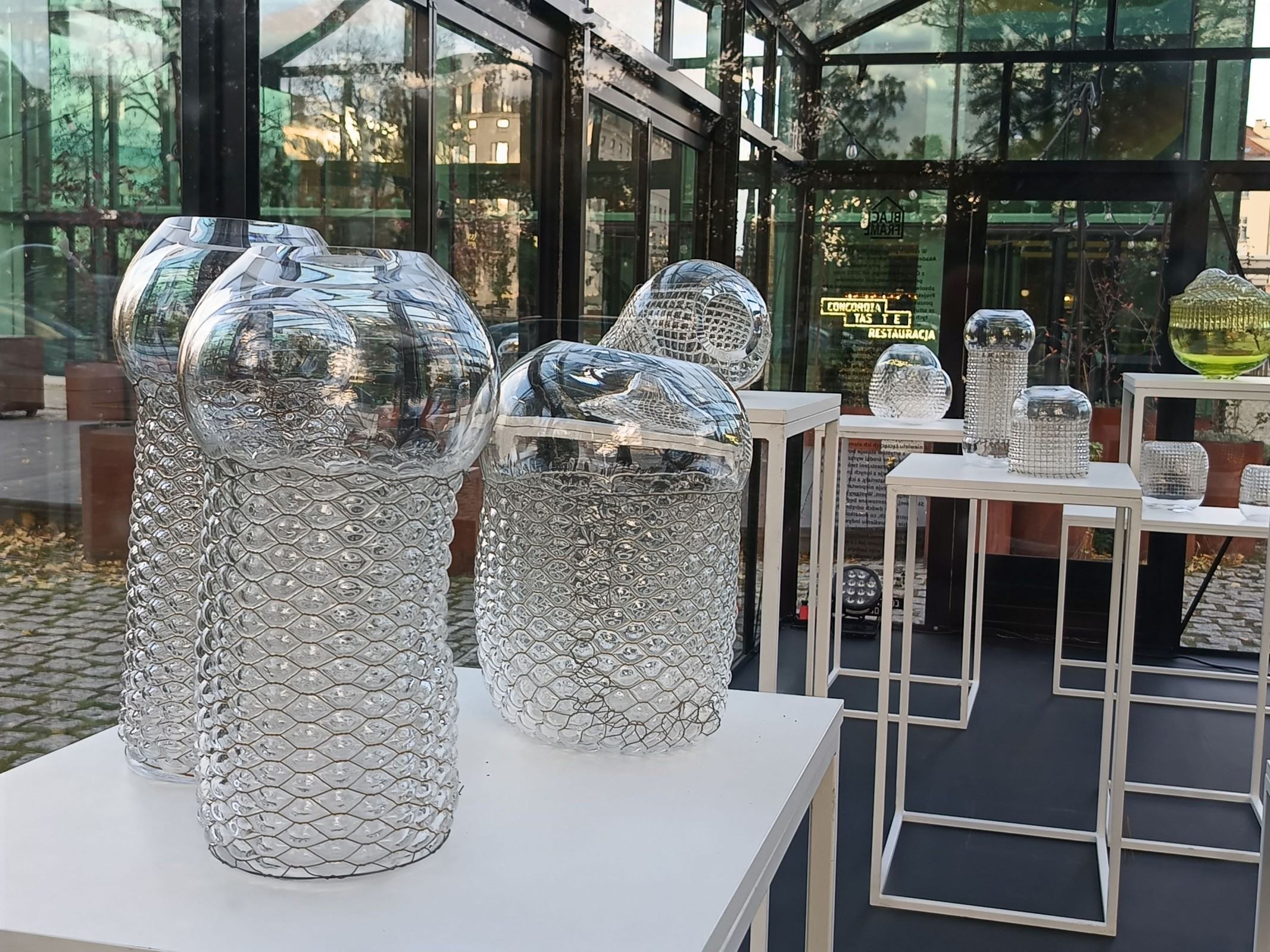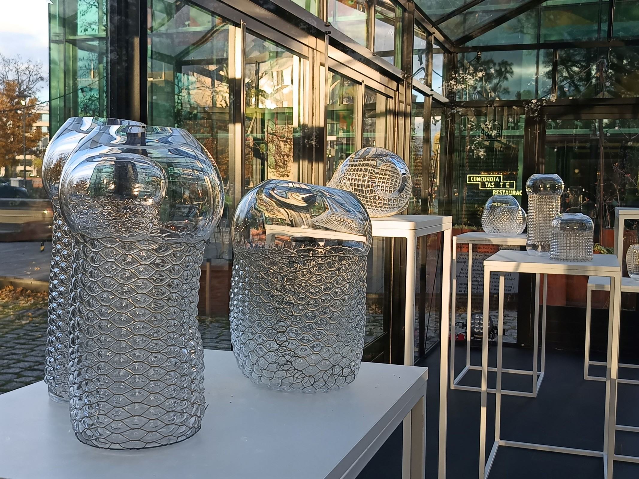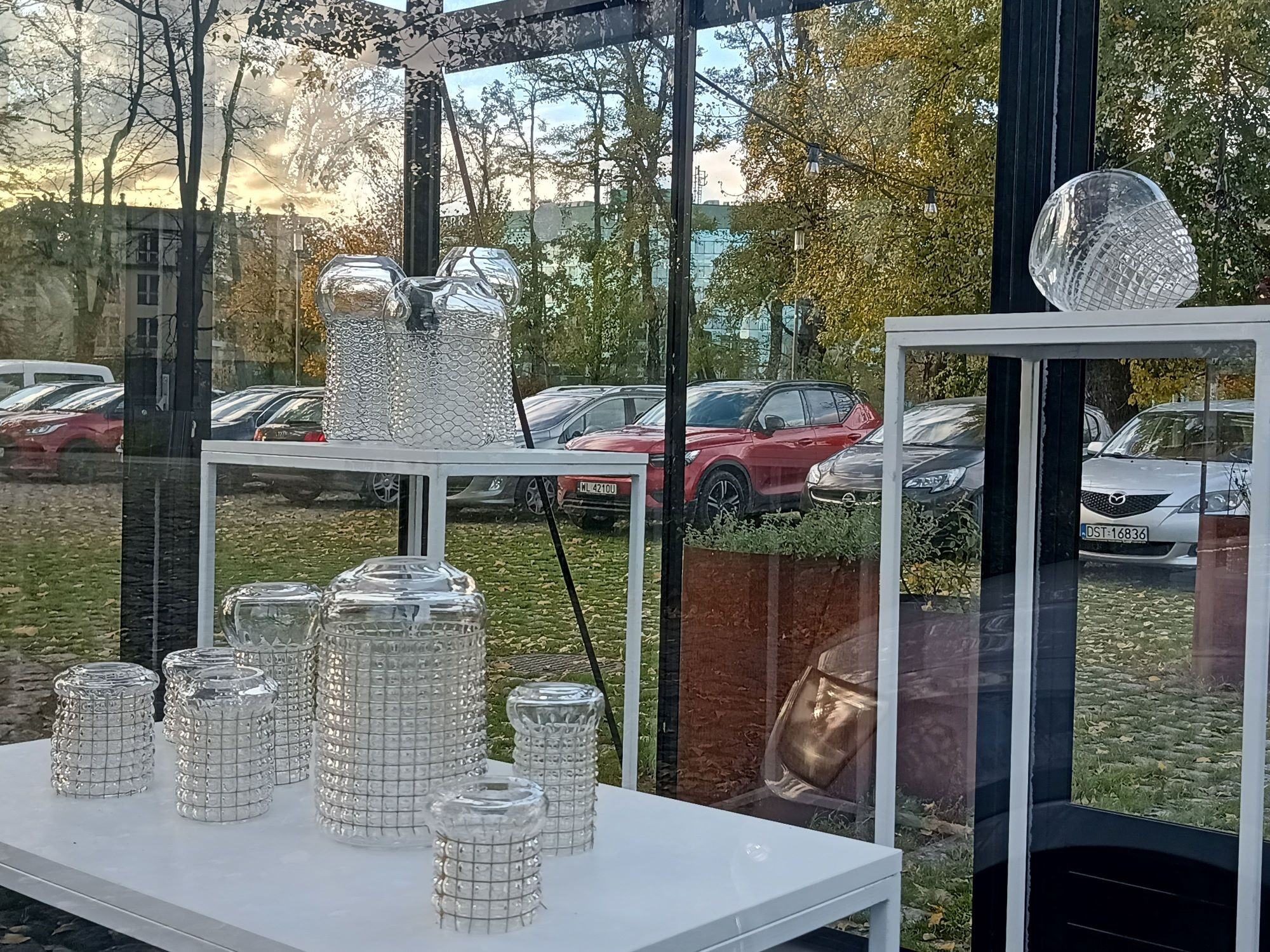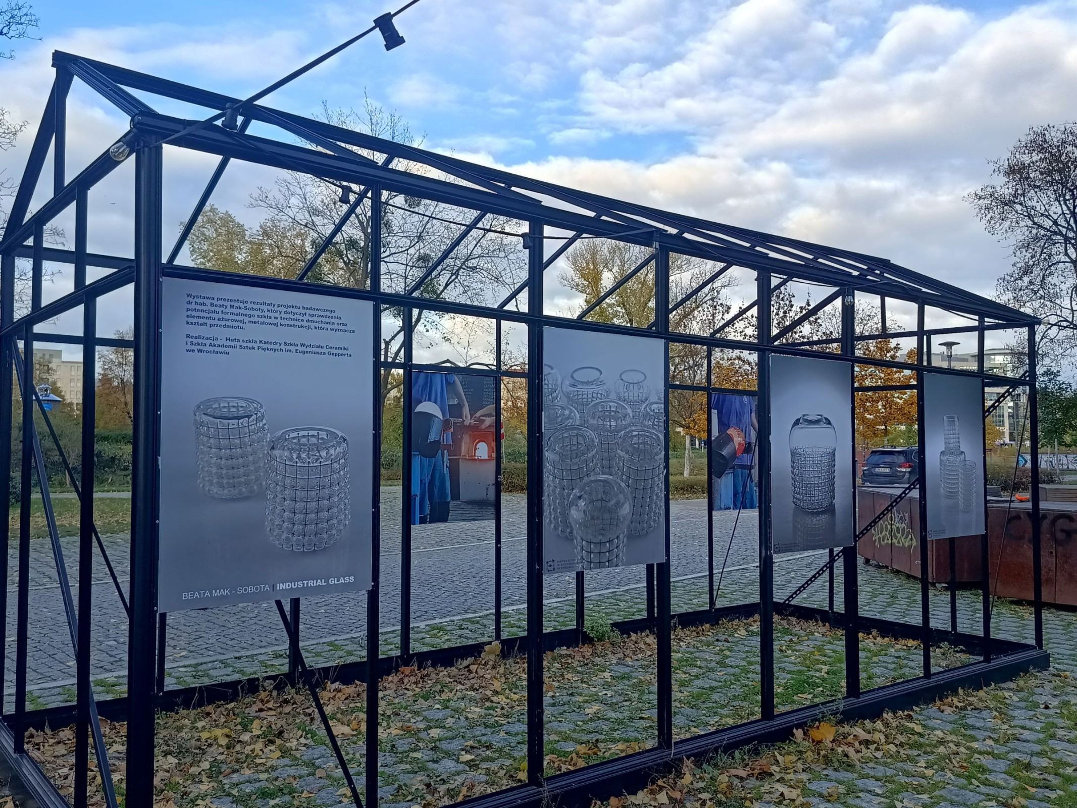 Beata Mak-Sobota eksperymentuje w procesami technologicznym związanym z techniką dmuchania szkła, wykorzystując metalowe siatki do kreowania formy naczynia. Łączy tradycyjne metody rzemieślnicze z materiałami, które przynależne są odległemu obszarowi budownictwa. W jej seriach naczyń Koszyńce i Siatkańce minimalizm przejawia się w ograniczeniu środków wyrazu, rezygnacji z dekoracyjności na rzecz klarowności relacji forma, tworzywo, technologia. Prace prezentowane w ramach wystawy „Industrial glass” w Black Frame przy Concordia Design zostały zrealizowane jako projekt badawczy w Hucie szkła im. prof. Zbigniewa Horbowego Katedry Szkła Wydziału Ceramiki i Szkła Akademii Sztuk Pięknych im. Eugeniusza Gepperta we Wrocławiu.