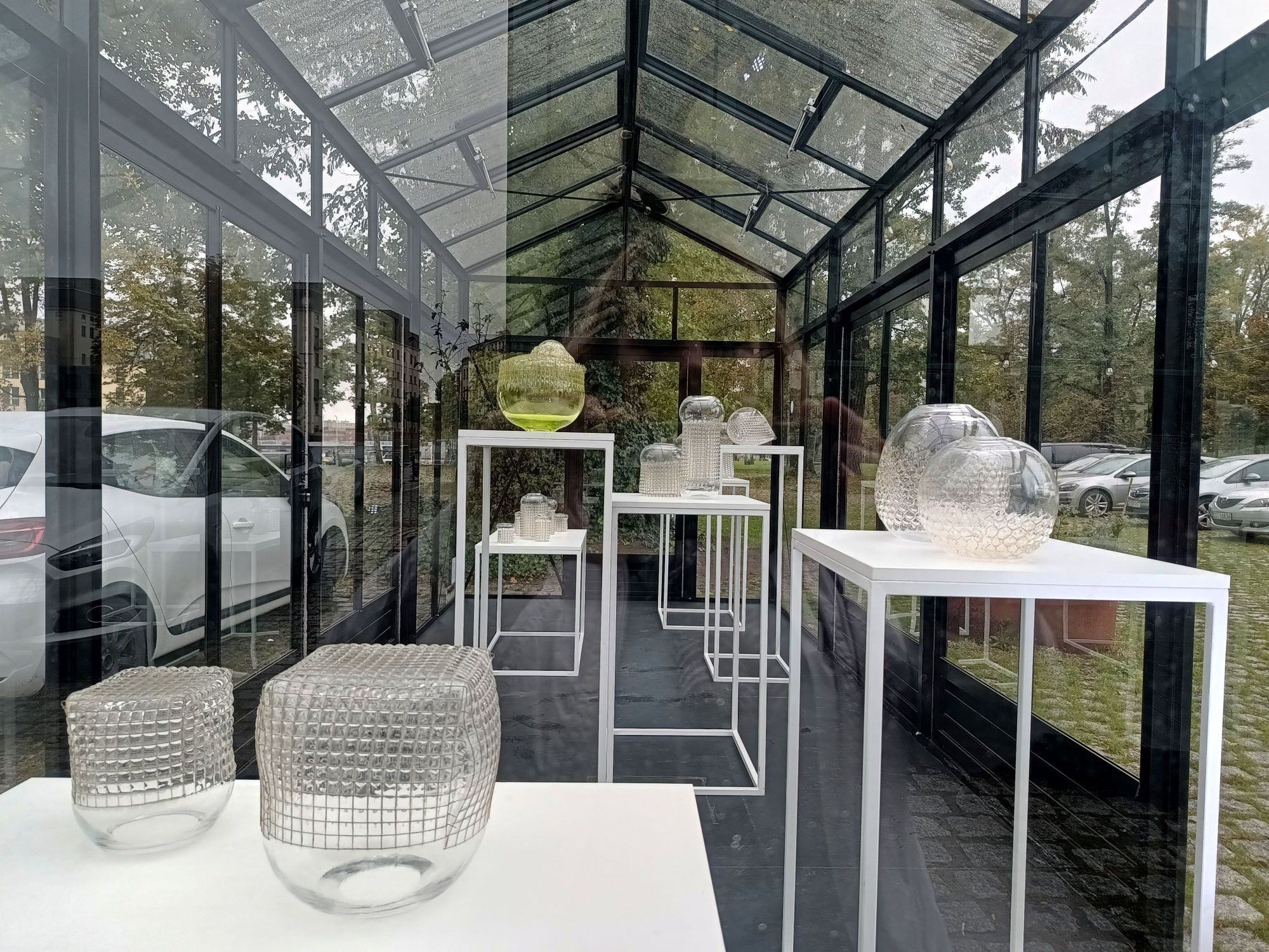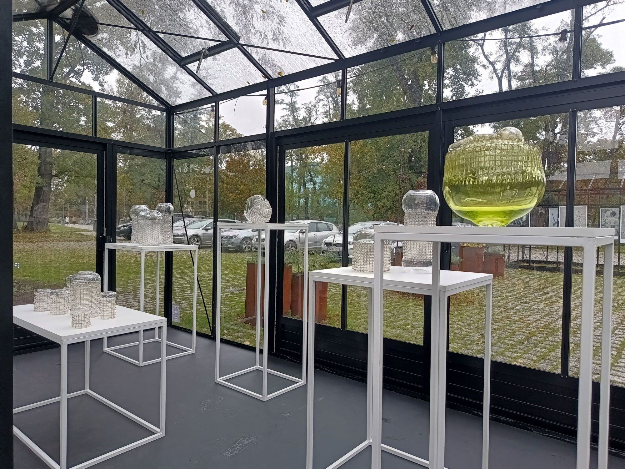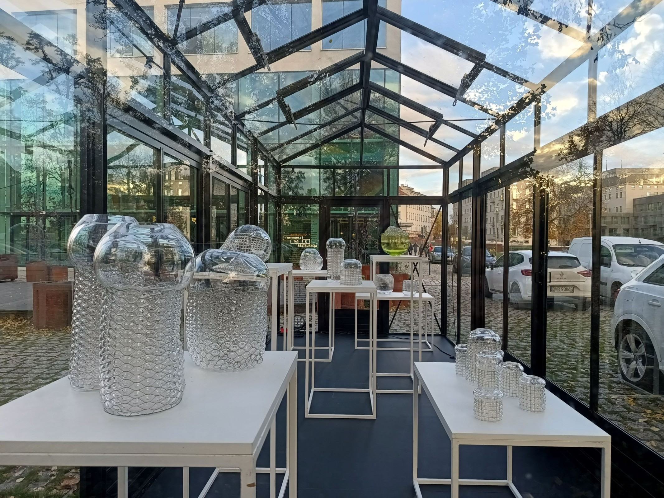 Beata Mak-Sobota eksperymentuje w procesami technologicznym związanym z techniką dmuchania szkła, wykorzystując metalowe siatki do kreowania formy naczynia. Łączy tradycyjne metody rzemieślnicze z materiałami, które przynależne są odległemu obszarowi budownictwa. W jej seriach naczyń Koszyńce i Siatkańce minimalizm przejawia się w ograniczeniu środków wyrazu, rezygnacji z dekoracyjności na rzecz klarowności relacji forma, tworzywo, technologia. Prace prezentowane w ramach wystawy „Industrial glass” w Black Frame przy Concordia Design zostały zrealizowane jako projekt badawczy w Hucie szkła im. prof. Zbigniewa Horbowego Katedry Szkła Wydziału Ceramiki i Szkła Akademii Sztuk Pięknych im. Eugeniusza Gepperta we Wrocławiu.