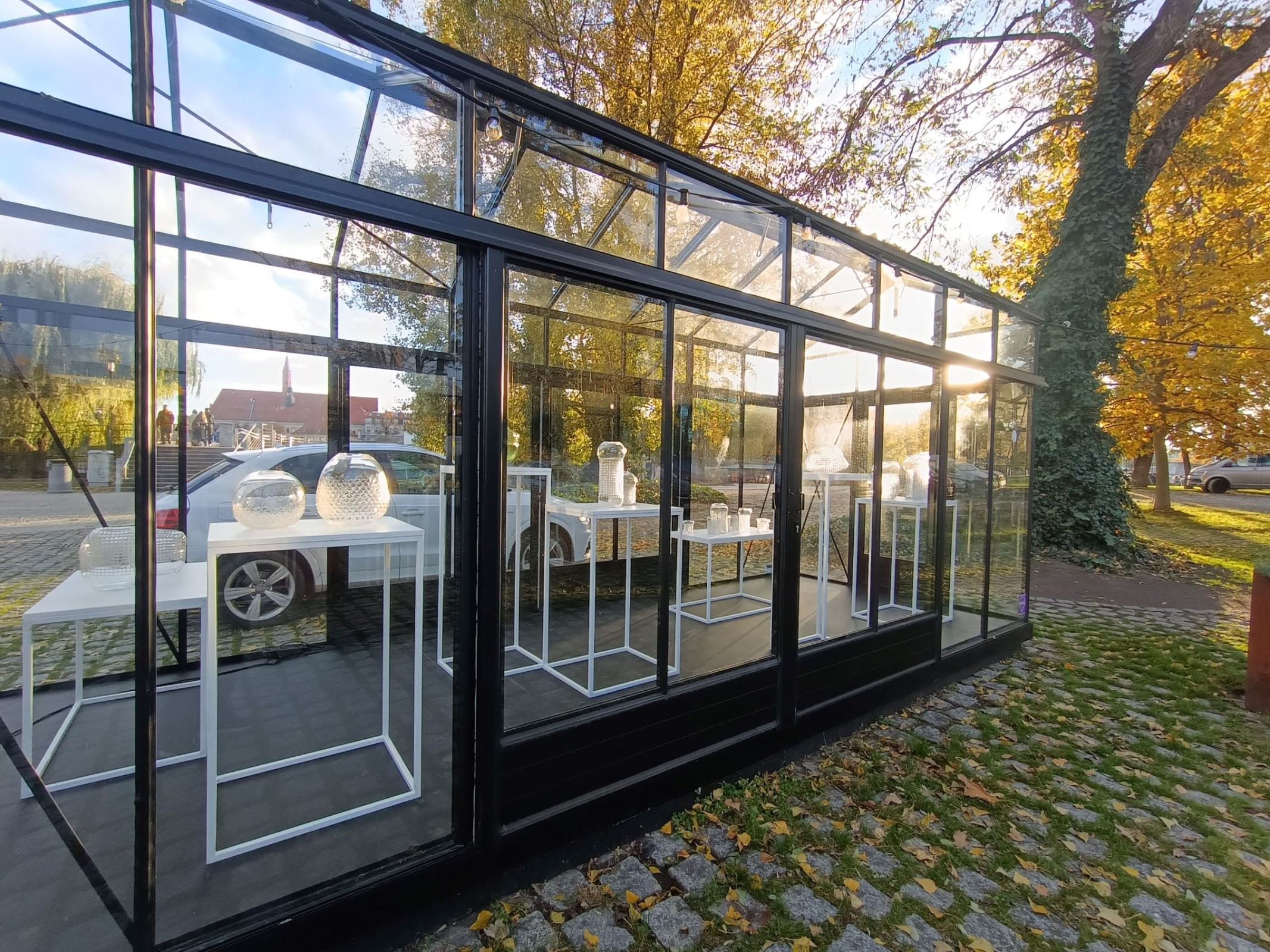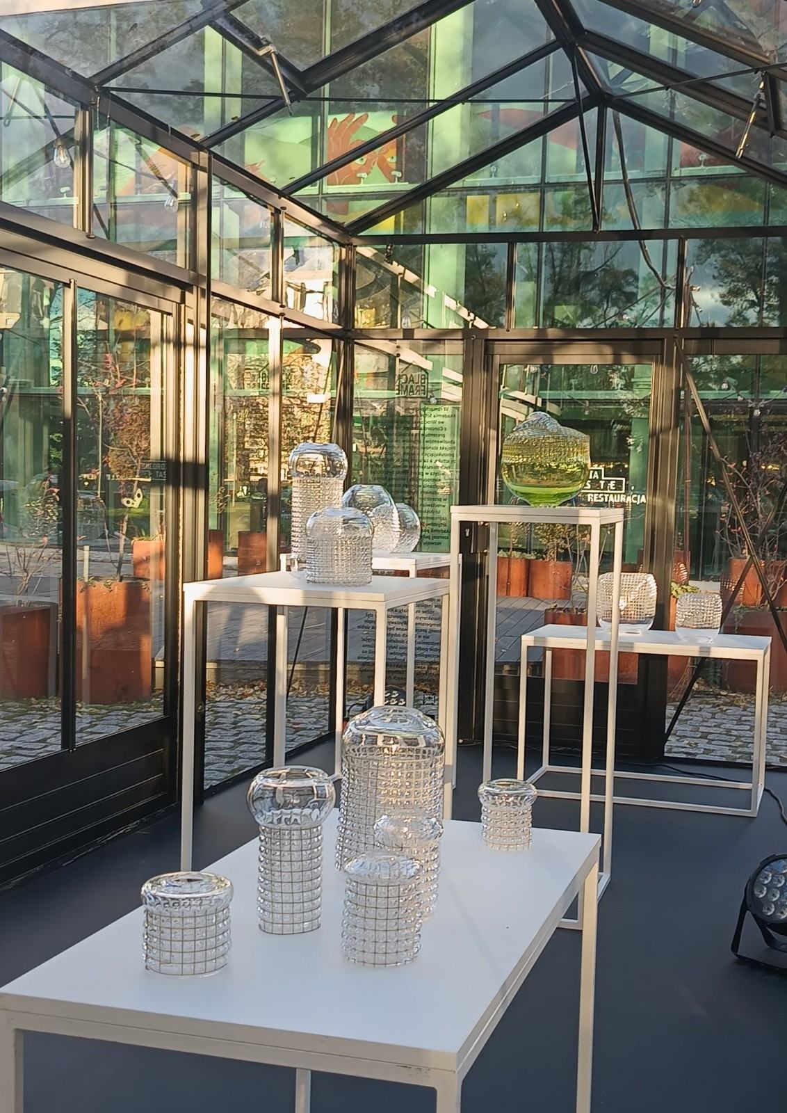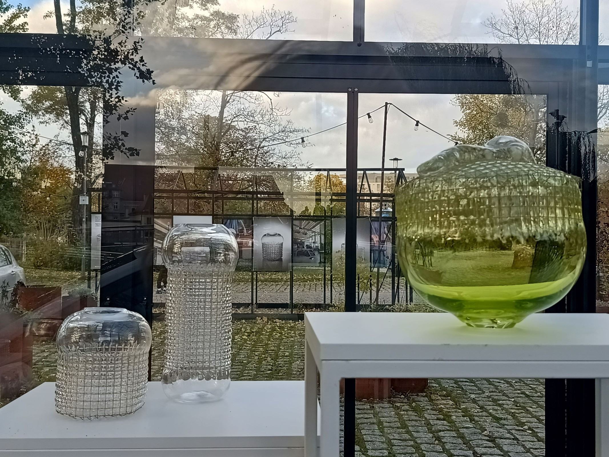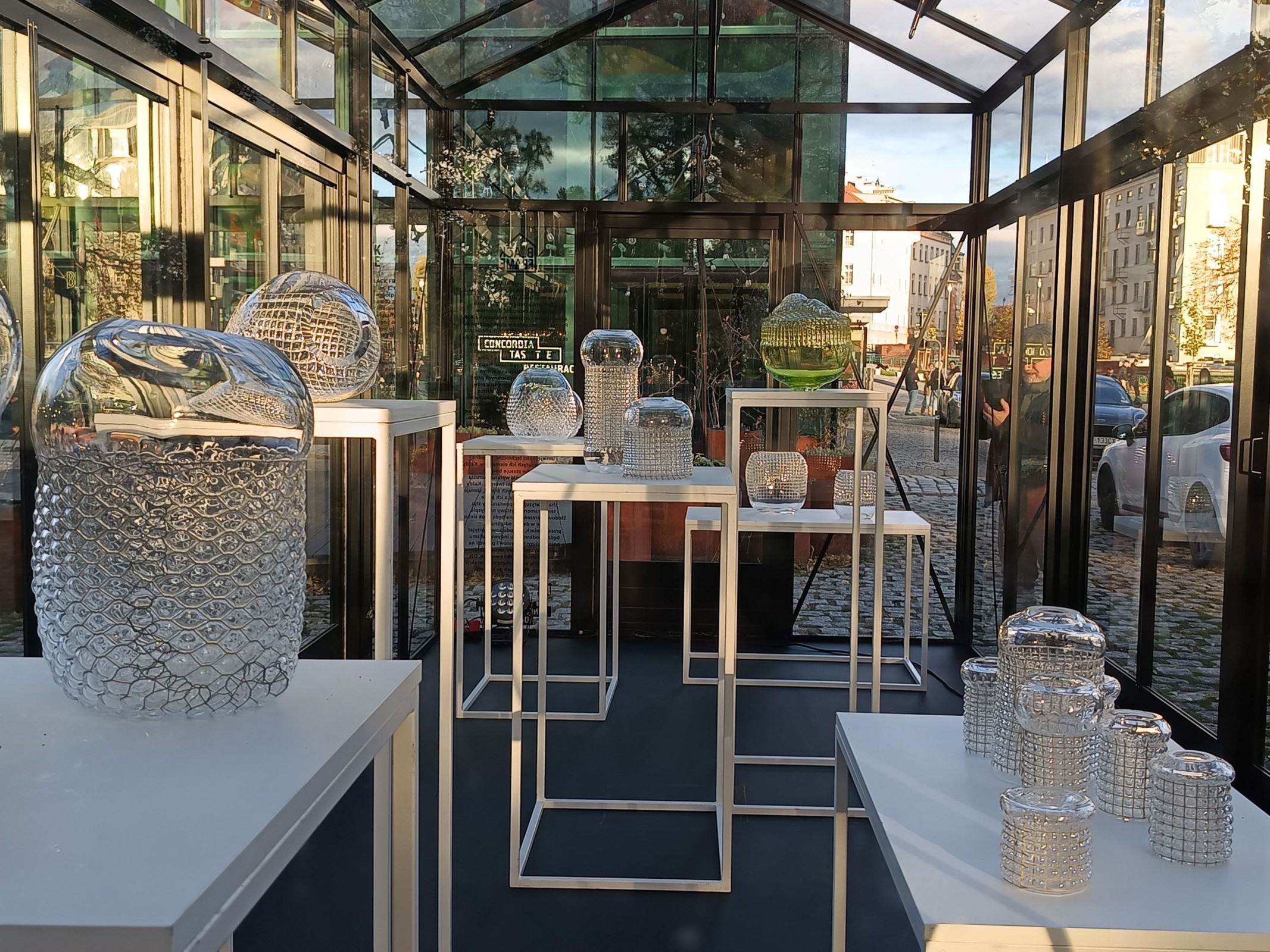 Beata Mak-Sobota eksperymentuje w procesami technologicznym związanym z techniką dmuchania szkła, wykorzystując metalowe siatki do kreowania formy naczynia. Łączy tradycyjne metody rzemieślnicze z materiałami, które przynależne są odległemu obszarowi budownictwa. W jej seriach naczyń Koszyńce i Siatkańce minimalizm przejawia się w ograniczeniu środków wyrazu, rezygnacji z dekoracyjności na rzecz klarowności relacji forma, tworzywo, technologia. Prace prezentowane w ramach wystawy „Industrial glass” w Black Frame przy Concordia Design zostały zrealizowane jako projekt badawczy w Hucie szkła im. prof. Zbigniewa Horbowego Katedry Szkła Wydziału Ceramiki i Szkła Akademii Sztuk Pięknych im. Eugeniusza Gepperta we Wrocławiu.