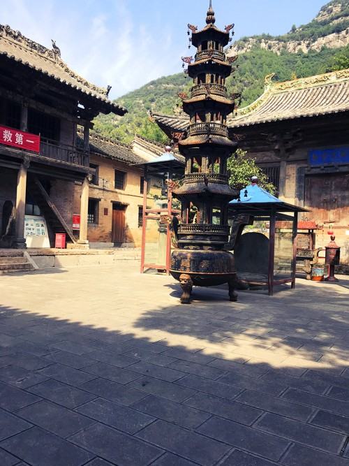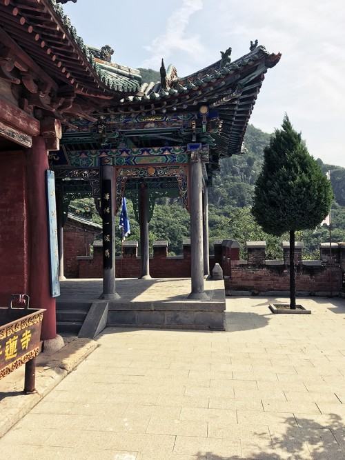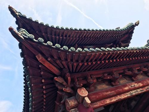 Palące słońce i kilka cirrusów na niebie przywitało nas, gdy wysiadaliśmy z autokaru nieopodal świątyni Qinglian. Na miejscu butelkowa budowla – z wejściem na wysokości kilku metrów i zespół świątynny sprawiający wrażenie zapomnianego. Polichromie na drewnie, których nie zatarł czas przywołują myśli o rozmachu i bogactwie wizji. Jakość wykonania skomplikowanych modułów potwierdza finezję chińskich rzemieślników. Zza murów piękny widok na góry „ozdobione" tu i ówdzie świątyniami. Palące słońce, cykady, zapach kadzideł i krab na talerzu, który czekał na nas, gdy weszliśmy do górskiej restauracji.