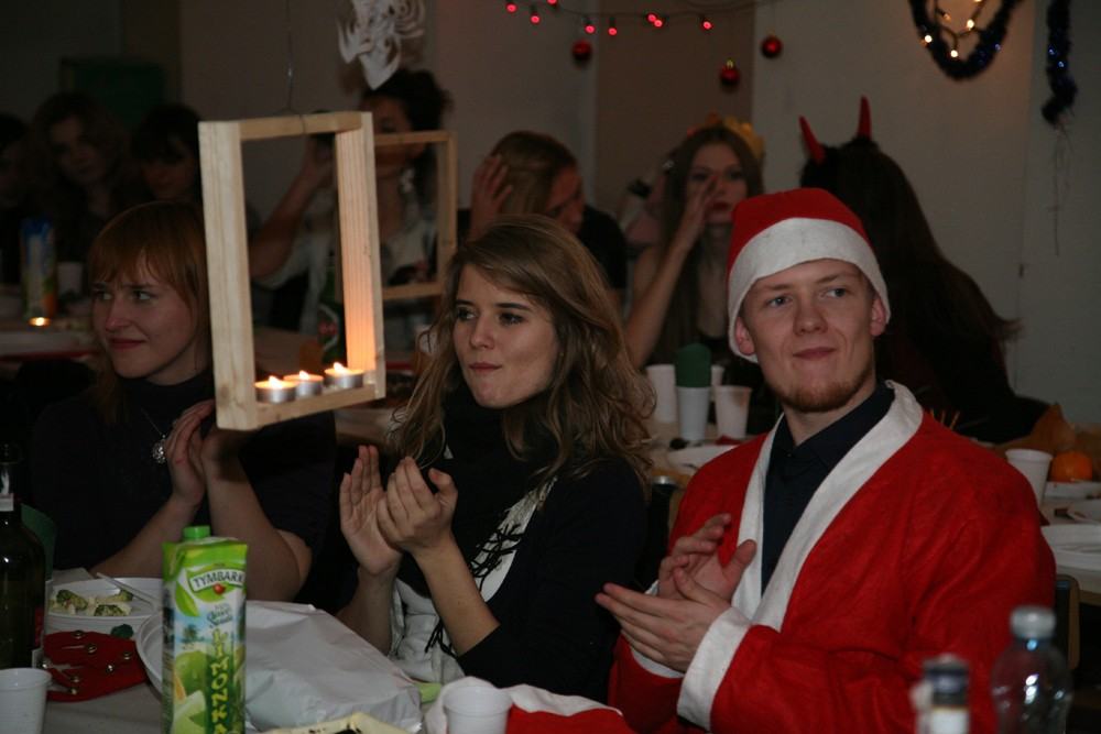 W piątek 14.12.2012r w pracowniach 205 oraz 208 odbyło się spotkanie wigilijne zorganizowane przez studentki i studentów Architektury Wnętrz. Mistrzem ceremonii tradycyjnie jak co roku został dr Andrzej Kabat który wystąpił tego wieczoru w dwóch odsłonach kostiumowych. Uroczystość uświetniła swoja obecnością Pani Dziekan wydziału AW i W która składała uczestnikom wydarzenia świąteczne życzenia. Po części oficjalnej rozpoczęła się część artystyczna obejmująca popisy wokalno-taneczne oraz nieskrępowaną zabawę ....