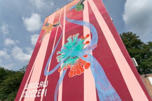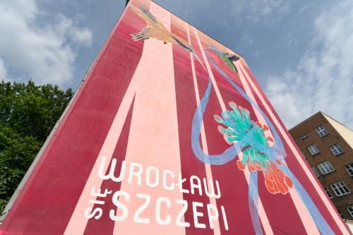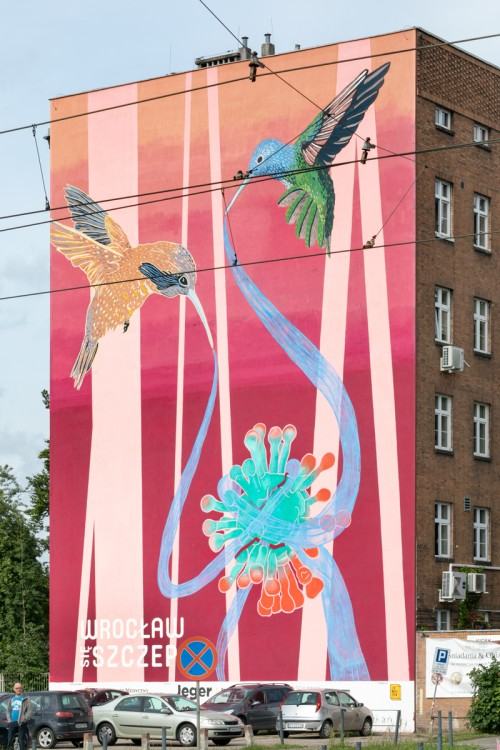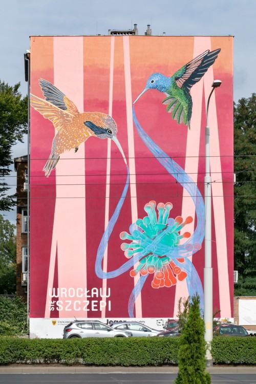 Mural odsłoniety 17 sierpnia na budynku Wydziału Lekarsko-Stomatologicznego przy ul. Krakowskiej 26, jest elementem miejskiej kampanii "Wrocław się szczepi". Jego autorką jest Malwina Gaj, która w lipcu obroniła pracę dyplomową na naszej uczelni, na Wydziale Malarstwa.