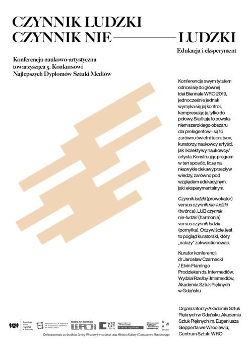 Zapraszamy do udziału w konferencji „CZYNNIK LUDZKI / CZYNNIK NIE-LUDZKI. Edukacja i eksperyment”, towarzyszącej Konkursowi Najlepszych Dyplomów Sztuki Mediów, która odbędzie się w dniach 16-17 maja 2019 w CSU-CI ASP we Wrocławiu.