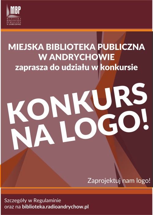 Miejska Biblioteka Publiczna w Andrychowie ogłasza Konkurs, którego celem jest wyłonienie najlepszej pracy przedstawiającej logo MBP w formie graficznej, wyróżniające się oryginalnością, kreatywnością, a także zmysłem artystycznym.