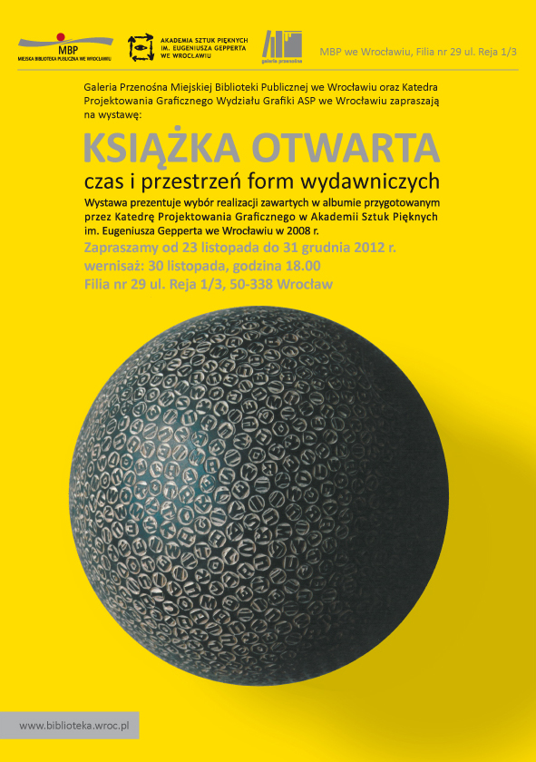 Wystawa prezentuje wybór realizacji wykonanych przez studentów oraz wykładowców zawartych w albumie Książka Otwarta. Album został