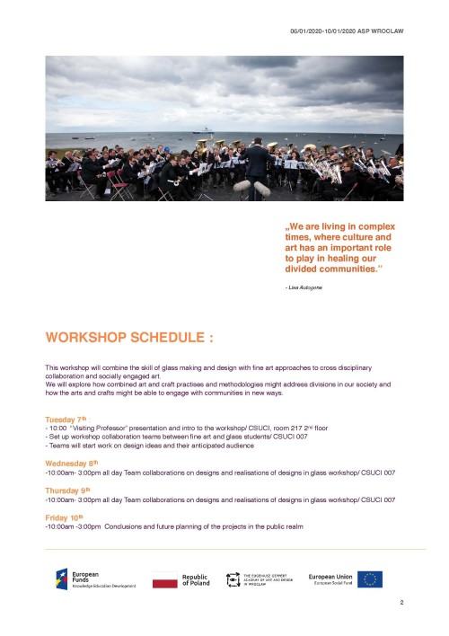 Wizyta organizowana jest w ramach projektu „Umiędzynarodowienie kształcenia, kompetentna kadra i nowoczesne zarządzanie gwarancją jakości i międzynarodowej obecności Akademii Sztuk Pięknych we Wrocławiu" współfinansowanego przez Unię Europejską ze środków Europejskiego Funduszu Społecznego.