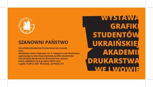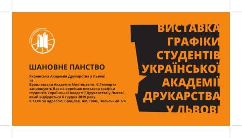 Zapraszamy na otwarcie wystawy grafiki studentów Ukraińskiej Akademii Drukarstwa we Lwowie, które odbędzie się 6 grudnia 2019, o godz. 13.00 w Auli ASP przy pl. Polskim.