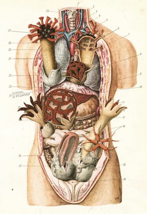 Wystawę otwierają prace z cyklu „Anima. Obrazy z Afryki 2005-2013" - czarno-białe fotografie, na których zostały utrwalone elementy afrykańskiego świata. Głównym motywem prac jest nieuchronność przemijania. Wyselekcjonowane elementy krajobrazu, zawłaszczająca kadr roślinność (splątane konary drzew, odartych z liści gałęzi), rozkładające się szczątki zwierząt, pozostałości obiektów o charakterze sakralnym - mogą budzić pewien niepokój współczesnego odbiorcy, który stara się wypierać fakt, że śmierć nierozerwalnie związana jest z ludzkim losem. W sali romańskiej galerii znajdują się prace z dwóch cykli „In My Garden" i „Primavera"; całość tworzy niezwykły spektakl koogzystencji: dominacji, przenikania, znikania, rodzenia się nowego życia. Powołany w kolorowych kolażach świat (połączenie motywów ze świata przyrody z ludzkim ciałem) burzy granicę między znanymi porządkami istnienia. Stworzone przez artystkę hybrydowe organizmy egzystują w symbiozie, bo tylko ona umożliwia rozwój i jest również szansą dla człowieka, nawet jeśli (jak w cyklu „Primavera") zniknie on w gąszczu wiosennej roślinności. Łącznik między światem wykreowanym za pomocą afrykańskich realiów a niezwykłym ogrodem stanowi zrealizowana w formie video praca o charakterze medytacyjno-relaksacyjnym.