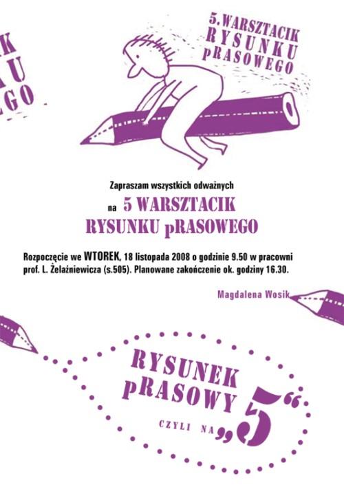 Myślę, że porozmawiamy także o ilustracji dla dzieci i przypomnimy sobie, że prasa dziecięca także istnieje. Co więcej -- tam ilustracja jest niezbędna. A zatem już za chwilę spodziewajcie się Warsztaciku Rysunku Prasowego Dzieciakowego ; ) Pozdrawiam Magda