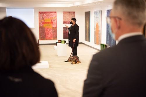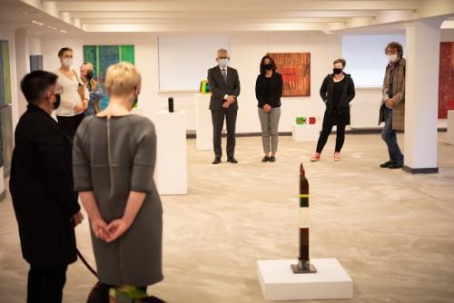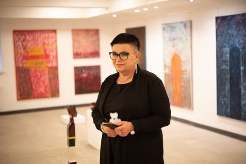 Moja wystawa jest prezentacją moich dokonań z ostatniego czasu, który obejmuje (co chyba nikogo nie dziwi) okres pandemii. Czas ten ponury i przygnębiający starałam się wypełnić wielobarwnymi bytami o wydźwięku optymistycznym. Zarówno moje szkła, jak i malarstwo, prezentują moje doświadczanie koloru i jego działania na mnie, i oczywiście na odbiorcę. Prezentowane abstrakty odnoszą się do rzeczywistości, stanowią swoisty pamiętnik - zapis symbolicznie ujętych emocji, przeżyć… refleksji wzbogaconych o połyskliwe refleksy na powierzchni szkła.