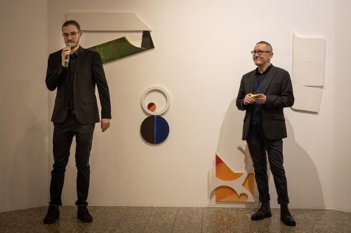W nowych pracach Marcina Derdy mamy do czynienia z właściwą jemu sublimacją w sztuce i wychyleniem w stronę abstraktu i symbolu. „Hommage" to opowieść o drodze wypełnionej znaczącymi spotkaniami i śladami, jakie zostają z nami, kiedy już kogoś nie ma.