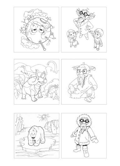 Całość, czyli 24 ilustracje czarno białe plus kolorowa okładka składa się na graficzną część kolorowanki dla dzieci w formie prostych informacji na temat globalnego ocieplenia. Inforamcja : Marta Płonka