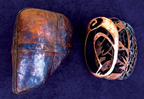malarstwo na miedzi, biżuteria z miedzi, formy przestrzenne - maski z