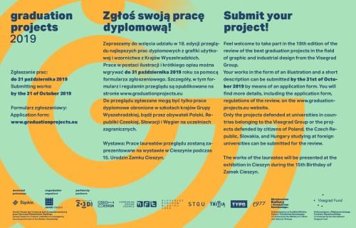 Graduation Projects ma charakter środkowoeuropejski, a jego uczestnikami są dyplomanci kierunków projektowych z Czech, Polski, Słowacji i Węgier oraz obywatele tych państw studiujący poza krajami Grupy Wyszehradzkiej. Można zgłaszać prace licencjackie, jak i magisterskie. Dyplomy są oceniane w dwóch kategoriach: 2D i 3D – grafiki użytkowej (w tym projektowania stron WWW, użytkowych projektów aktywnych, czy aplikacji ekranowych) oraz wzornictwa przemysłowego (z uwzględnieniem tkanin, ubioru, szkła lub ceramiki).