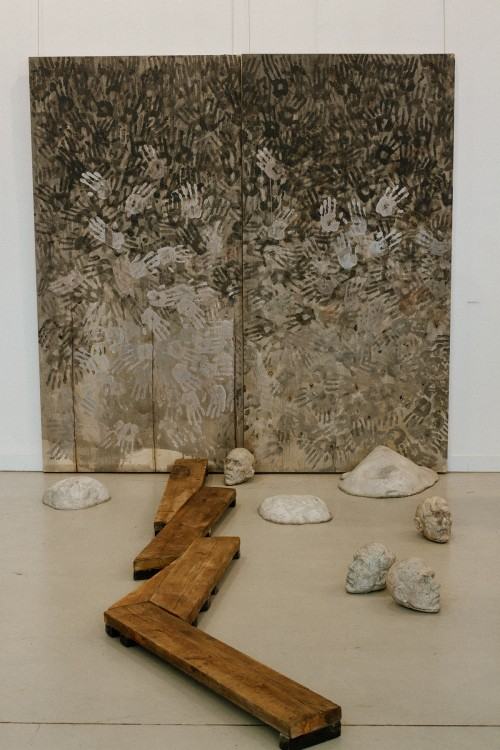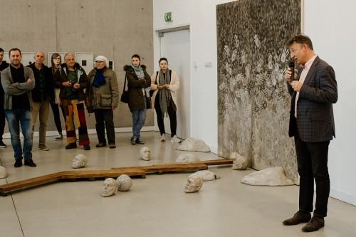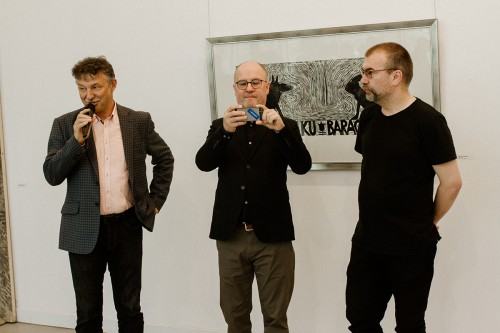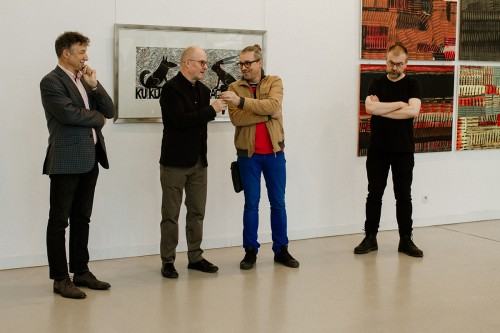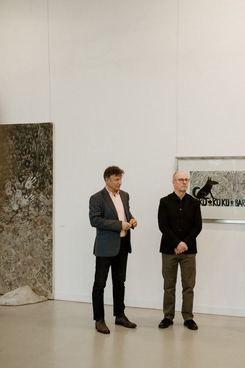 Na prezentowanej wystawie Akademii Sztuk Pięknych w Wilnie zatytułowanej „Mistrzostwo" podejmowane są próby żonglowania obu znaczeniami. Przede wszystkim z myślą o reprezentacyjnym formacie wystawy, jej celem jest zaprezentować publiczności polskiej artystów litewskich rezydujących i tworzących w Wilnie, autorów pracujących w Akademii Sztuk Pięknych, z ukierunkowaniem na oddziaływanie wizualne. Punktem odniesienia tego połączenia (swoista „alfa", plus, „yin") jest linia i wyraz graficzny , a punktem końcowym („omega", minus, „yang") – kształt i postać. Naturalnie ani początek, ani koniec nie są możliwe bez mistrzostwa w znaczeniu najbardziej prawdziwym, bezpośrednim. Przecież sztuka istnieje właśnie jako pewna metamorfoza punktu, linii, plamy w postać, kształt, przestrzeń.