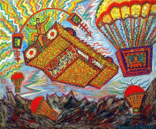 Aby zacząć podróż w świat malarstwa Krzysztofa Skarbka, wsiadamy do statku powietrznego, jakim jest migoczące cyrkowymi światełkami auto i wznosimy się w górę… Z niemal kosmiczną prędkością przechodzimy w inną, kolorową, przesyconą magią rzeczywistość… Płyniemy niebem na latającym samochodzie spotykając znajomych, którzy machają do nas z kolorowych, frunących balonów. Widzimy ludzi, wibrujących kosmiczną energią, którzy prowadzą wirtualną rozmowę; dzikie zwierzęta, żyjące w pełnej symbiozie z ludźmi, tak jak polarny śnieżnobiały wilk. Nad magicznym Wrocławiem szybują różowy rekin i tygrys, a my spotykamy księżycową rodzinę, którą tworzą astronauci i słonie… i już za moment na dach naszego samochodu wskakuje sympatyczny biały niedźwiedź, który chce nam towarzyszyć w dalszej podróży! Pojawiają się też fantastyczne niby-zwierzęta – radosne cyborgi, żyjące w przyjaźni z ludźmi. W tym świecie jesteśmy też świadkiem cudów samego Jezusa – zamiany wody w wino oraz uzdrowień, które dzieją się na naszych oczach. Rozbrzmiewa wtedy grana przez dwa anioły na trąbach niebiańska muzyka nad miastem… Jest tu tak niewiarygodnie… Ten nowy, wspaniały świat urzeka i czaruje. Gdy wracamy do zwykłej rzeczywistości, może nas nawiedzić refleksja: czy świat wyobraźni Krzysztofa Skarbka to antycypacja przyszłości? A może właśnie te baśniowe wizje okażą się futurystyczne i będą wspaniałym antidotum na spełnione już niektóre z przepowiedni antyutopii Nowego, wspaniałego świata Aldousa Huxleya… Anna Brudzińska "Aktywizuję tutaj wydarzenia z pogranicza codzienności, baśni, potocznych działań oraz marzeń. Treść i struktura baśni wyraża podstawową mądrość, czytelną dla wszystkich niezależnie od różnic cywilizacyjnych. Sięga ona korzeniami do znanych archetypów, a zarazem stanowi pewną zagadkę, którą należy rozwiązać samemu. W mojej baśni banalna codzienność ulega przemianie w realizację pragnień o życiu niewymuszonym, zgodnym z projekcjami nieskrępowanej fantazji. Możemy dostrzec tu również nowe mity i symbole naszych czasów. Jednymi z dzisiejszych przedmiotów – symboli, którym nadano mitologiczne znaczenie są: samochód, telewizor, komputer i telefon komórkowy. Urządzenia te są czymś więcej niż tylko rzeczami do kształtowania środowiska człowieka. Nie są one uzupełnieniem jego otoczenia, lecz częstokroć stają się celem samym w sobie.” Krzysztof Skarbek Kurator wystawy – Anna Brudzińska Galeria PIONOVA Gdańsk – Stare Miasto ul. Olejarna 2 www.pionova.net