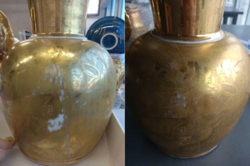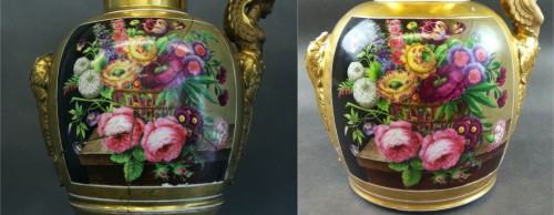 Przedmiotem konserwacji i restauracji był XIX-wieczny, należący do Muzeum Ziemi Lubuskiej im. Jana Dekerta w Gorzowie Wielkopolskim, porcelanowy wazon pochodzący z manufaktury Nast w Paryżu. Obiekt wykonany z porcelany, dodatkowo zdobiony barwną emalią oraz złotem. Składał się z pięciu elementów połączonych metalowym stelażem, który zdemontowano i zastąpiono nowym. Całość oczyszczono, ponownie sklejono i uzupełniono ubytki w porcelanowym czerepie, następnie scalono je kolorystycznie i uzupełniono ubytki złoceń.