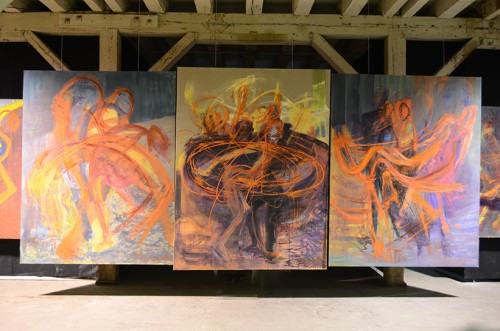 Na wielkoformatowych realizacjach wyraża emocje i nastroje w malarskim geście, w materii, w kolorze. Obrazy zostały namalowane w technice tempery żółtkowej olejno-żywicznej na płótnie.