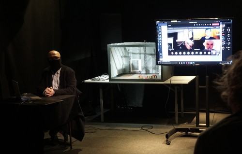 Drugą obronę poprowadził Jan Głąb z "Projektem i realizacją scenografii do spektaklu ,,Udając ofiarę'' Olega i Vladymira Presniakow w reżyserii Krzysztofa Dracza w Akademii Sztuk Teatralnych im. Stanisława Wyspiańskiego w Krakowie - Filii we Wrocławiu." Tutaj również prezentowane były plansze z projektami scenografii, kostiumów oraz makieta. W związku z warunkami pandemicznymi zaproszeni goście mogli uczestniczyć w obronie online, wśród zaproszonych byli m.in. JM Rektor prof. Wojciech Pukocz, Prorektor ds. dydaktycznych i studenckich, Dziekan wydziału AW, WiS dr hab. Agata Danielak-Kujda.