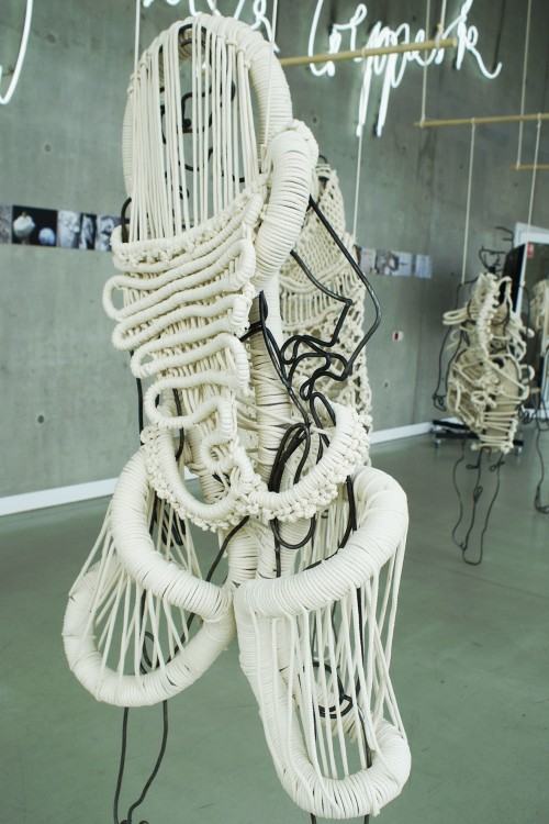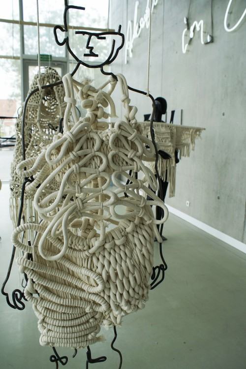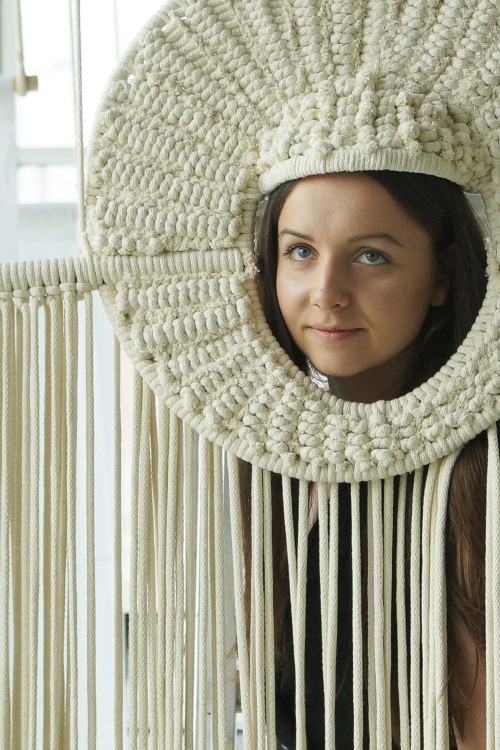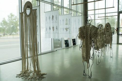 Dyplomantka Emilia Mrozińska broniła pracy, którą wykonała w Pracowni Projektowania Ubioru Kreacyjnego Pani dr hab. Urszuli Smazy Gralak. Obiekty były częścią projektową pracy pt. „WOKÓŁ CZŁOWIEKA - struktury powiązań " - autorska kolekcja ubiorów inspirowana formami organicznymi.