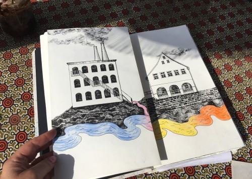 Jednym z efektów warsztatów jest książka złożona z naszych autorskich, przede wszystkim graficznych opowieści nosząca tytuł DINGS Nowa Ruda. Tworząc ją inspirowaliśmy się inicjatywą poety Marcina Mokrego i Karoliny M. Wiśniewskiej, którzy robili DINGSA wraz z nami jako kolejne wydawnictwo opowiadające wielogłosem mieszkańców i przyjezdnych o konkretnym miejscu.