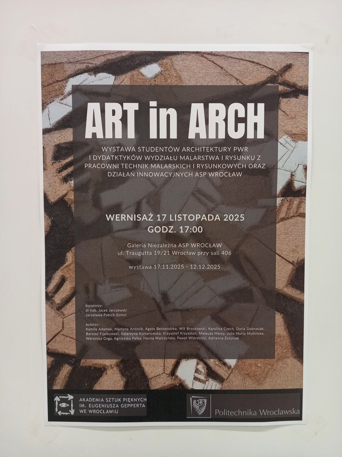 Zapraszamy do obejrzenia fotorelacji z otwarcia wystawy zbiorowej pt. Art in Arch, które odbyło się 17 listopada w przestrzeni Galerii Niezależnej ASP.