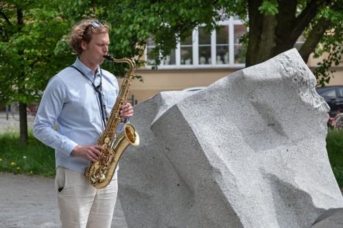 Podczas wernisażu rzeźby zostały ograne i ośpiewane.
