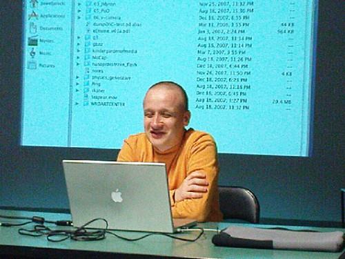Twórca medialny - jednoosobowe laboratorium software'owe. Współcześni artyści medialni w coraz mniejszym stopniu pozostają klientami komercyjnego przemysłu komputerowego, a w kreacji własnych, lub sabotowaniu istniejących mediów znajdują jeśli nie cel strategiczny, to przynajmniej taktyczny. Jaka jest rzeczywista rola software'u w tworzeniu sztuki medialnej? Aktywności artystów pracujących z mediami elektronicznymi często znajdują formalną ekspresję w oprogramowaniu własnie - m.in. to odróżnia twórców medialnych od takich, którzy po prostu posługują się mediami (zastanymi). Różnica dotyczy więc statusu podmiotu twórczego: użytkownika lub kreatora. Innymi słowy: w sztuce medialnej software jest czyms więcej niż narzędziem. Umiejętność formułowania własnych koncepcji jako kodu jest więc nie tyle ciekawostką ile koniecznością. Paweł Janicki (1974) jest niezależnym twórcą i producentem medialnym pracującym z muzyką generatywną, estetyką microsound i kompozycją algorytmiczną, interaktywnymi systemami na potrzeby performance'ów i instalacji oraz własnym sprzętem i oprogramowaniem. Tworzył ścieżki dźwiękowe i interaktywne efekty do artystycznych CD-ROMów, radia i telewizji, realizował projekty bazujące na wielowymiarowej i fraktalnej geometrii aplikowanej na potrzeby dźwięku i animacji, uczestniczył w wielu projektach dokumentujących stan elektroakustycznej awangardy i współpracował z wieloma artystami, uczelniami, przemysłem IT i nagraniowym. Paweł jest związany z Centrum Sztuki WRO, a jego zainteresowania koncentrują się na bazującym na programowaniu przetwarzaniu dźwięku, aplikacjach sieciowych i rewitalizacji produktów istniejących infrastruktur: militarnej i rozrywkowej. Był także współzałożycielem i długoletnim członkiem popularnego kolektywu Gameboyzz Orchestra Project. Ponadto jest autorem Ping Melody - performance łączącego improwizację muzyczną z globalną wymianą informacji w przestrzeni Internetu. Za Ping Melody został w 2004 r. uhonorowany The netarts.org 2004 Grand Prize - nagrodą przyznawaną przez tokijski Haramachida University. Tekst: Paweł Janicki.