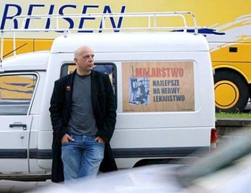 Auto Galeria czynna jest całą dobę od 12 maja do 12 czerwca 2008. PAWEŁ JARODZKI zajmuje się obserwowaniem rzeczywistości i sztuką współczesną . Mieszka i pracuje we Wrocławiu w otoczeniu licznej rodziny i grupki przyjaciół. Anartysta, malarz, kurator, autor tekstów o sztuce i pedagog. Współzałożyciel legendarnej grupy LUXUS. Uczestnik wielu wystaw i wydarzeń artystycznych a prace jego znajdują się w wielu ważnych kolekcjach. Prezentowana praca stanowi ironiczny komentarz do naiwnej ale głębokiej wiary autora w sztukę a malarstwa w szczególności. Jednocześnie jest hołdem dla tej niezliczonej rzeszy artystów, którzy sztuce poświęcili swoje życie a świat nie odpłacił im się pieniędzmi i uznaniem. Pedagog ASP Wroclaw , pracownik BWA Wroclaw. Serdecznie zapraszam Marek Sienkiewicz. Auto Galeria 1.Celem galerii jest całodobowa auto prezentacja najwybitniejszych przedstawicieli sztuki pierwszej połowy XXI wieku, oraz utworzenie z ich wystąpień Auto Muzeum. 2.Auto Galeria ma możliwość przedstawiania prac w prestiżowych miejscach Dolnego Śląska i na świecie, wszędzie tam gdzie istnieją warunki dojechania transportem kołowym. 3.Galeria przewiduje oglądanie prac w wyznaczonych, atrakcyjnych miejscach miast i miejscowości na całym świecie. 4.Prezentacja odbywa się w formie statycznej i ruchomej, nigdy jednak nie przekraczając 38,89 m/s. 5.Galeria dokłada wszelkich starań aby pokazy odbywały się zgodnie z obowiązującymi przepisami, w szczególności przepisami ruchu. 6.Auto Galeria czynna jest przez 24 h na dobę i zapewnia zaproszonym artystom obustronną formę wypowiedzi Marek Sienkiewicz.
