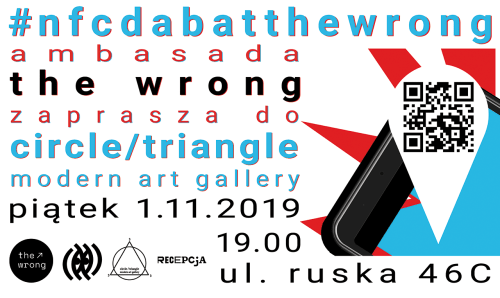It will be as "wrong" as uncommon. First embassy of "The Wrong": "#nfcdabatthewrong" in the "CIRCLE/TRIANGLE Modern Art Gallery" in the "RECEPTION" club in Wroclaw. Embassy #nfcdabatthewrong is a combination of #nfcdab and "The Wrong". Both of them escape categorization. "The Wrong", as a biennial, is inappropriate and unconventional, but still "legendary". It is a new biennial of digital art artists from all over the world. The #nfcdab project, in turn, carries digital art on mobile devices and reads it from QR codes. This bizarre conglomerate of "#nfcdabatthewrong" will take place in newly created gallery "CIRCLE/TRIANGLE Modern Art Gallery" located in the club "RECEPTION" at 46C Ruska Street in Wroclaw. The date is not accidental. It is a time when contacts with curiosities through the "medium" are already a common occurrence. Project #nfcdab (Communication of the Near Field - Digital Explosion of Art) is an independent project straight from Wroclaw. "The Wrong" is as global as the Internet. The #nfcdab is more ludic, it is connected with the place, meeting people and communion with new technologies for artistic purposes. #nfcdab, as a biennial of mobile digital art, has so far conquered a number of European cities, such as Gol in Norway, Amsterdam, Valencia, Dusseldorf, Warsaw - and now it will come back to Wroclaw with a big bang!The first of a series of experimental exhibitions will start on November 1st at "CIRCLE/TRIANGLE Modern Art Gallery" in the "RECEPTION" club. The works of 33 Polish and foreign digital and Internet artists will be presented by means of artistic posters with QR codes (graphic representation of machine code) and NFC tags (system of short-range communication). The contact with the works is made possible by an electronic medium, such as a smartphone or tablet. It is enough to scan the QR code placed on the poster or bring the phone closer to an electronic chip.